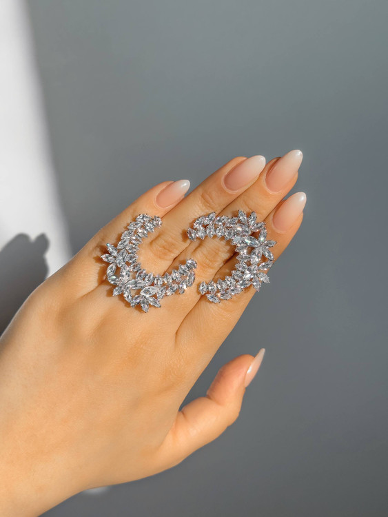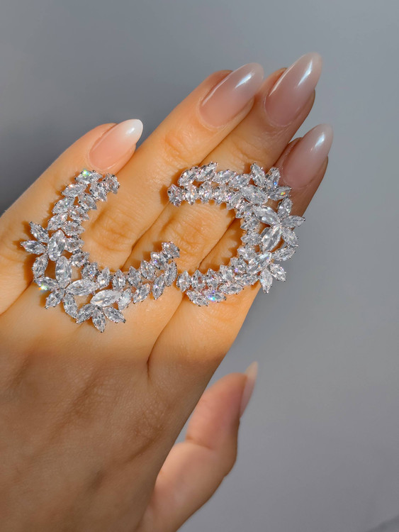 گوشواره ها به رنگ نقره ای و آبکاری نقره هستن🎀تمام نگینها مخراج شده و ریزش ندارن