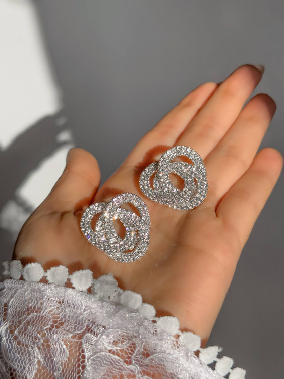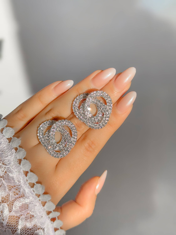 سپاس از اینکه افق رو انتخاب کردین🌸گوشواره ها به رنگ نقره ای و آبکاری نقره هستن🎀تمام نگینها مخراج شده و ریزش ندارن بسیار براق هستن و تمام نگینها تراش خوردن