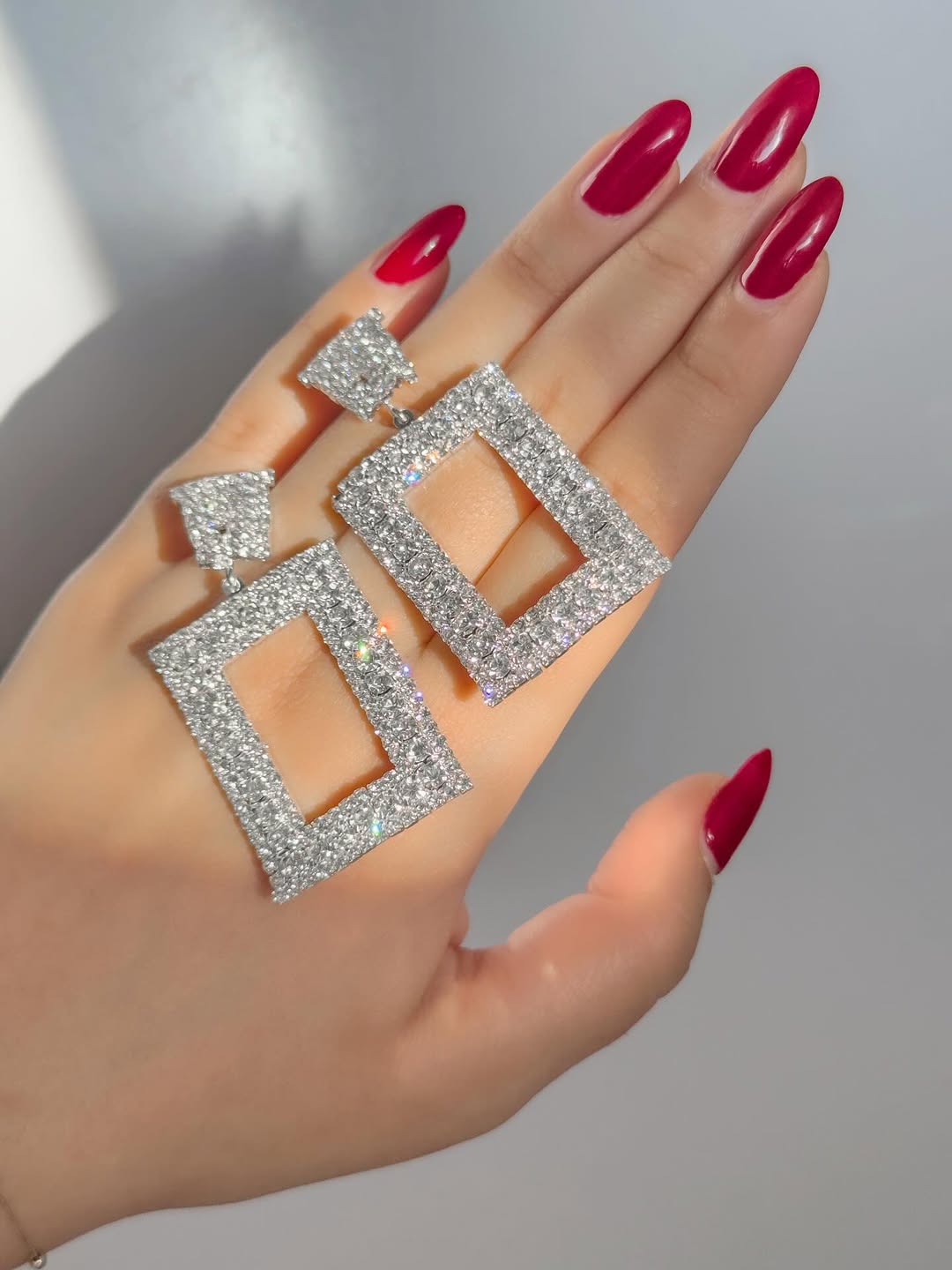 گوشواره ها به رنگ نقره ای و آبکاری نقره هستن🎀تمام نگینها مخراج شده و ریزش ندارن