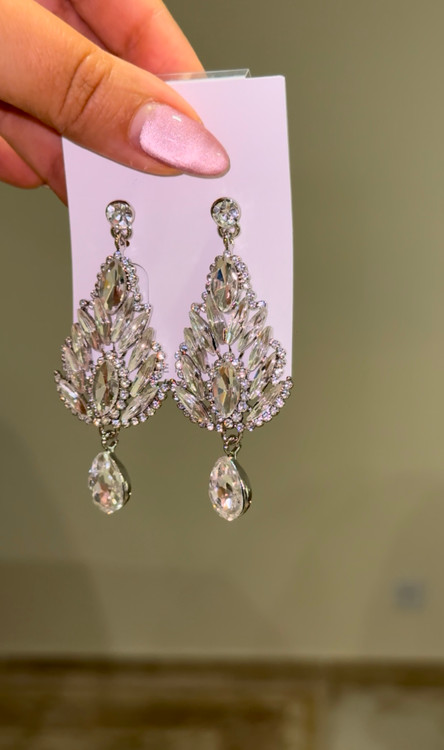 گوشواره ها به رنگ نقره ای و آبکاری نقره هستن🎀تمام نگینها مخراج شده و ریزش ندارن