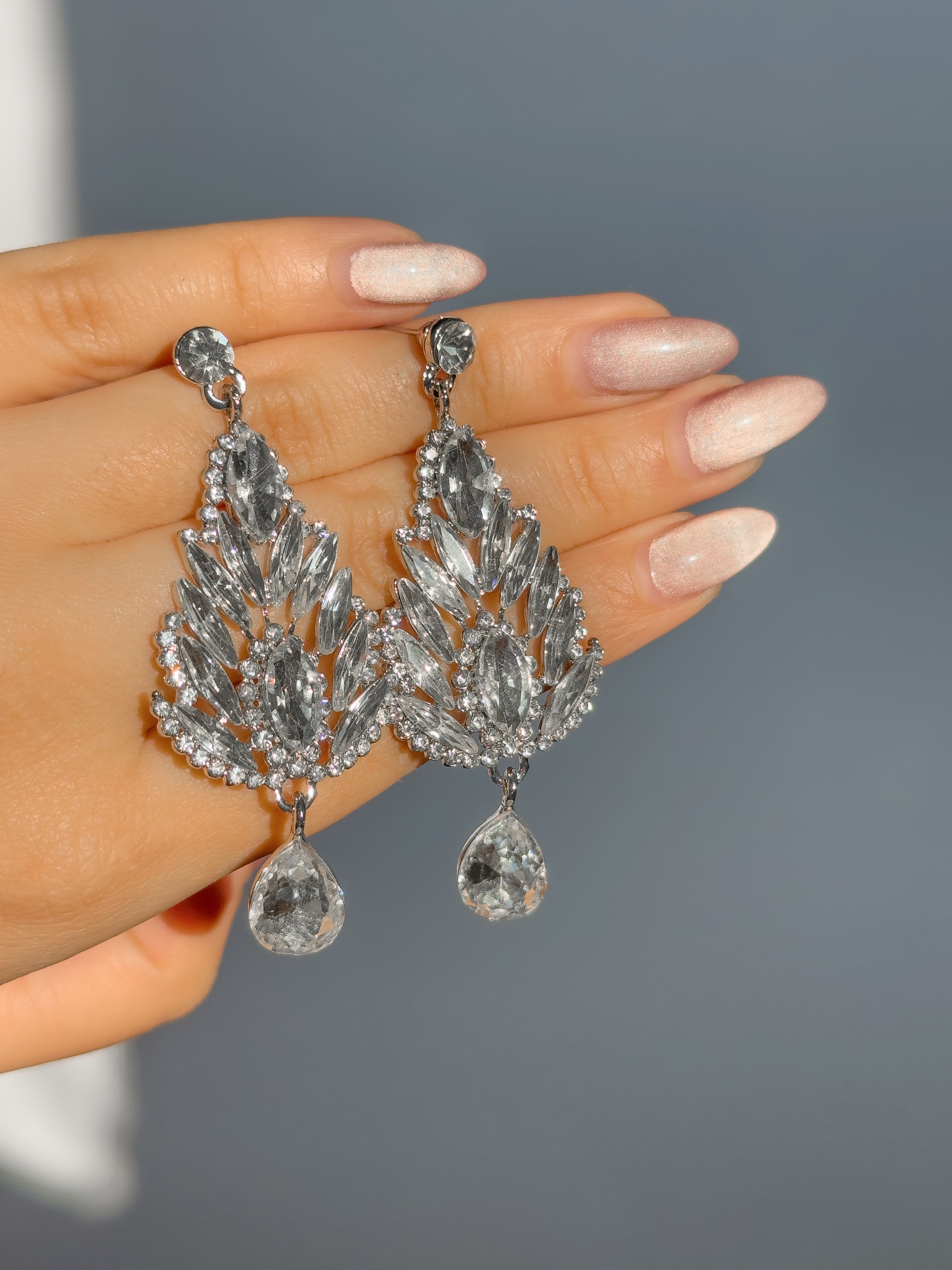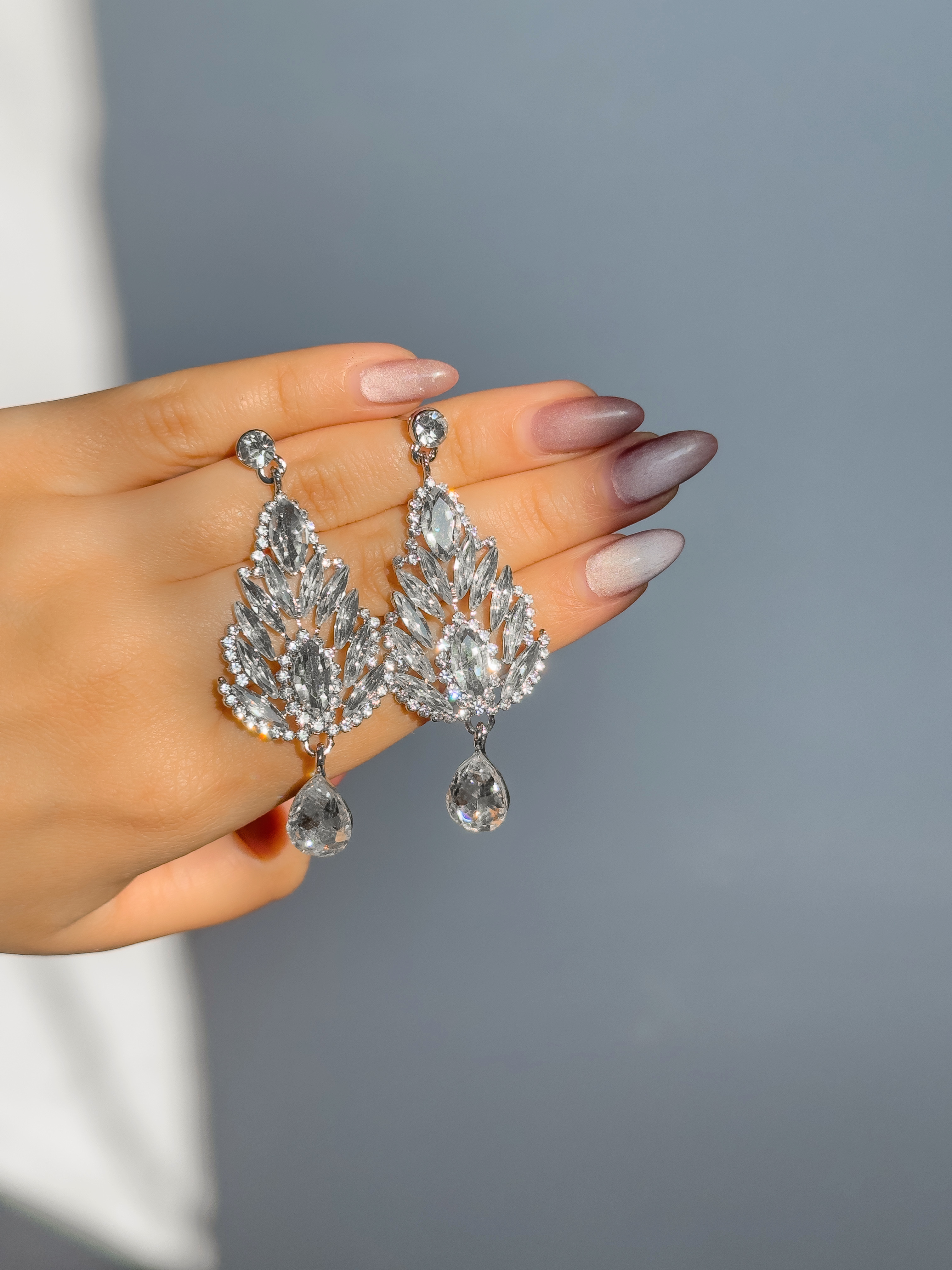 گوشواره ها به رنگ نقره ای و آبکاری نقره هستن🎀تمام نگینها مخراج شده و ریزش ندارن