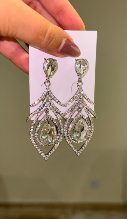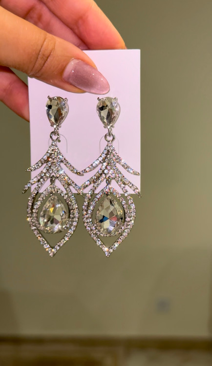 گوشواره ها به رنگ نقره ای و آبکاری نقره هستن🎀تمام نگینها مخراج شده و ریزش ندارن